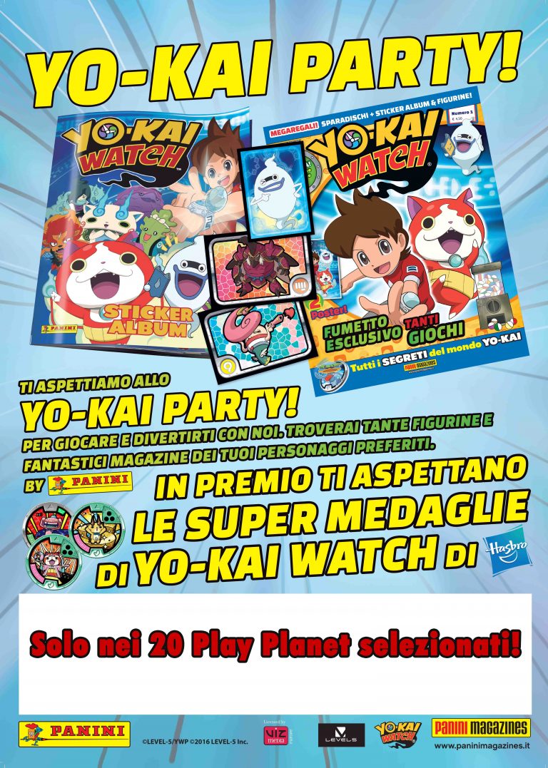 Solo nei 20 Play Planet selezionati ti aspettano grandi eventi a tema… Imperdibili occasioni di scambio figurine per completare la tua collezione in compagnia di tanti amici, divertentissimi momenti di animazione a ritmo di Yo-Kai Dance, simpatici quizzoni e sfide a squadre per eleggere il massimo estimatore Yo-Kai!
